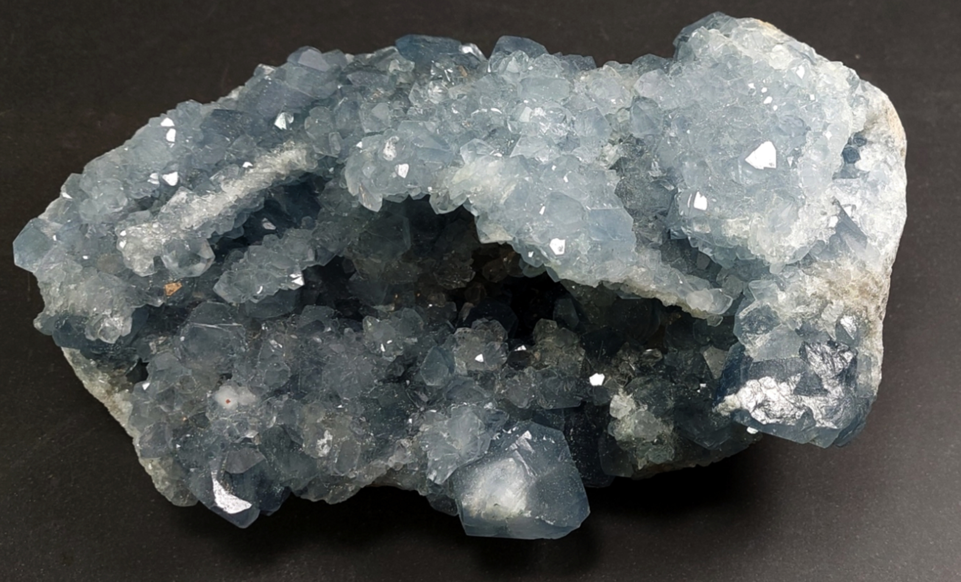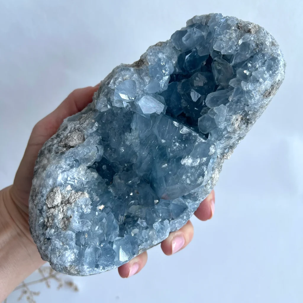 Der celestit steht für Ruhe, Klarheit und spirituelle Verbindung. Er wirkt harmonisierend auf Emotionen und fördert inneren Frieden.